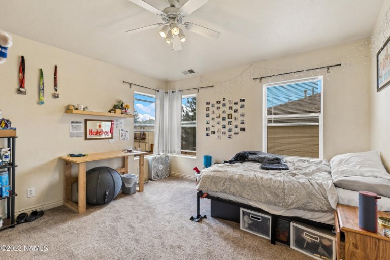 This townhome is located in the highly sought after Litzler Townhome Subdivision. It's been beautifully upgraded with new flooring around it's gas fireplace, quartz countertops and a trex decking patio. It has 4 large bedrooms, 3 bathrooms, a laundry room, a two-car garage, a fenced courtyard/backyard with a trex decking patio, and ample parking surrounding. The location is close to Northern Arizona University, shopping, hiking/biking trails, restaurants, and backing the Flagstaff Urban Trail System. Get anywhere you want to go in minutes either by foot, bike, or car.